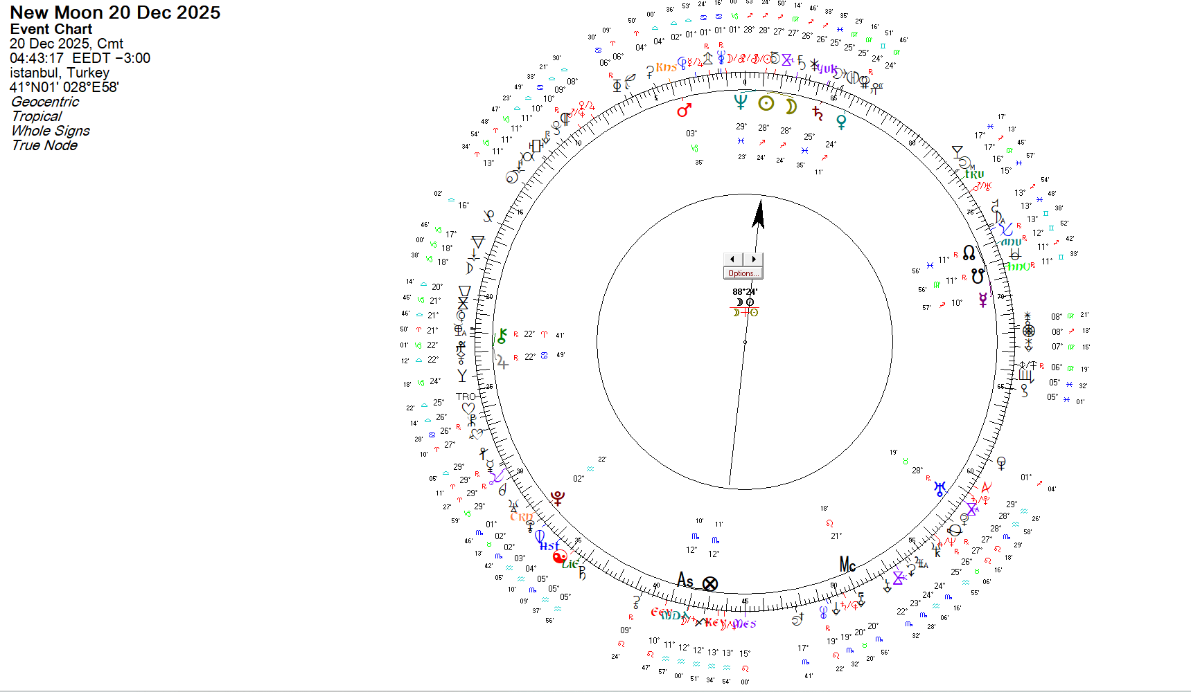 20 Aralık 2025’te İstanbul saatine göre 04:43’te yay Burcu’nun 28°’sinde dolunay enerjisi gibi farkındalık yaşatacak ama biraz da kafa karışıklığı veren bir yeni ay meydana gelecek. Uranüs’ün enerjisiyle yılın bu son zamanlarını yaşarken 2026’da bazı şeylerin değişeceğini sezinleyebilir, hatta bazı fırsatları kaçırmış gibi hissedebilir ama Neptün enerjisiyle de bir yandan kafamız karışabilir. Yeniayın yöneticisi Jüpiter’in sevdiği ama retro olduğu bir konumda olması, her şeyin farkında olmayı ama yine de var olan koşullardan dolayı henüz elinden hiçbir şeyin gelmediğini işaret ediyor. Dolayısıyla yeni bir tohum ekmek anlamına gelen yeniay enerjisi, yeniayın yöneticisi Jüpiter’in retro olması ve yeniayı açısal olarak görmemesi sebebiyle yeni başlangıçlar yapmayı çok istememizi ama uygun koşulların olmayışı sebebiyle mecazi olarak tohumları henüz ekemeyeceğimizi işaret ediyor.Bu temayı en çok hissedecek burç ve dereceler şöyle;